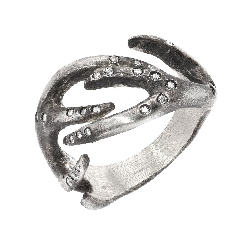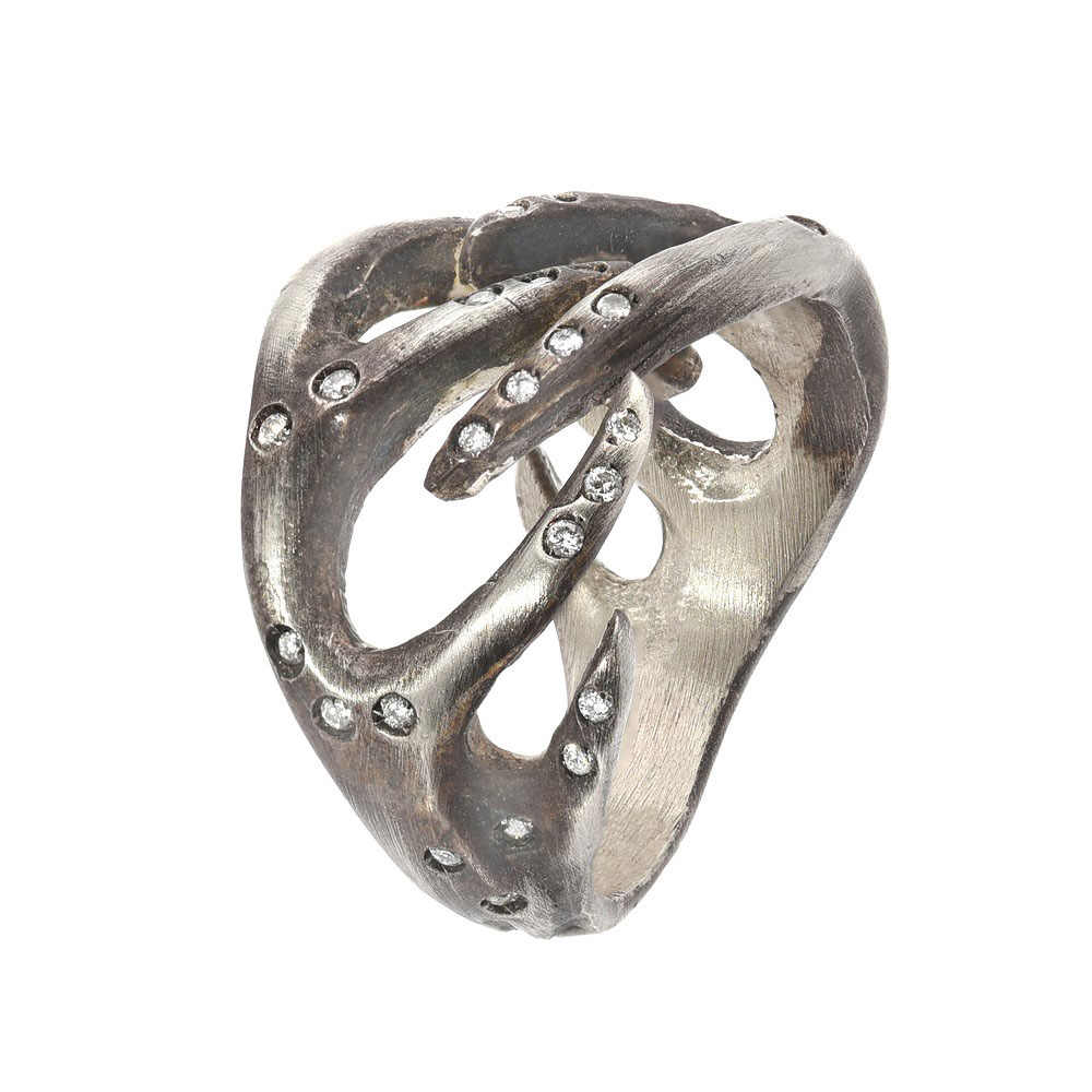 Low profile elegant antler ring with 1 carats in oxidized silver