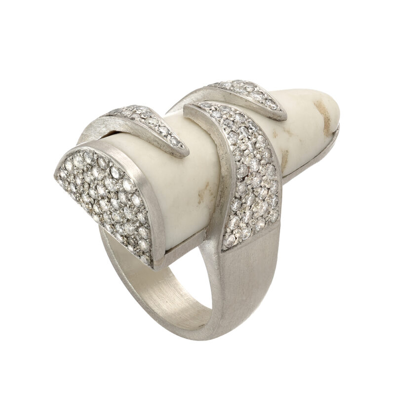 .26 carats of white diamonds against 18k make for an edgy yet supremely elegant earring that is both statement for evening and demure enough for day. A new classic.