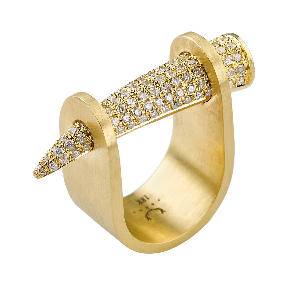 All yellow gold high polished 18k bling spike with more than 2 carats of diamonds